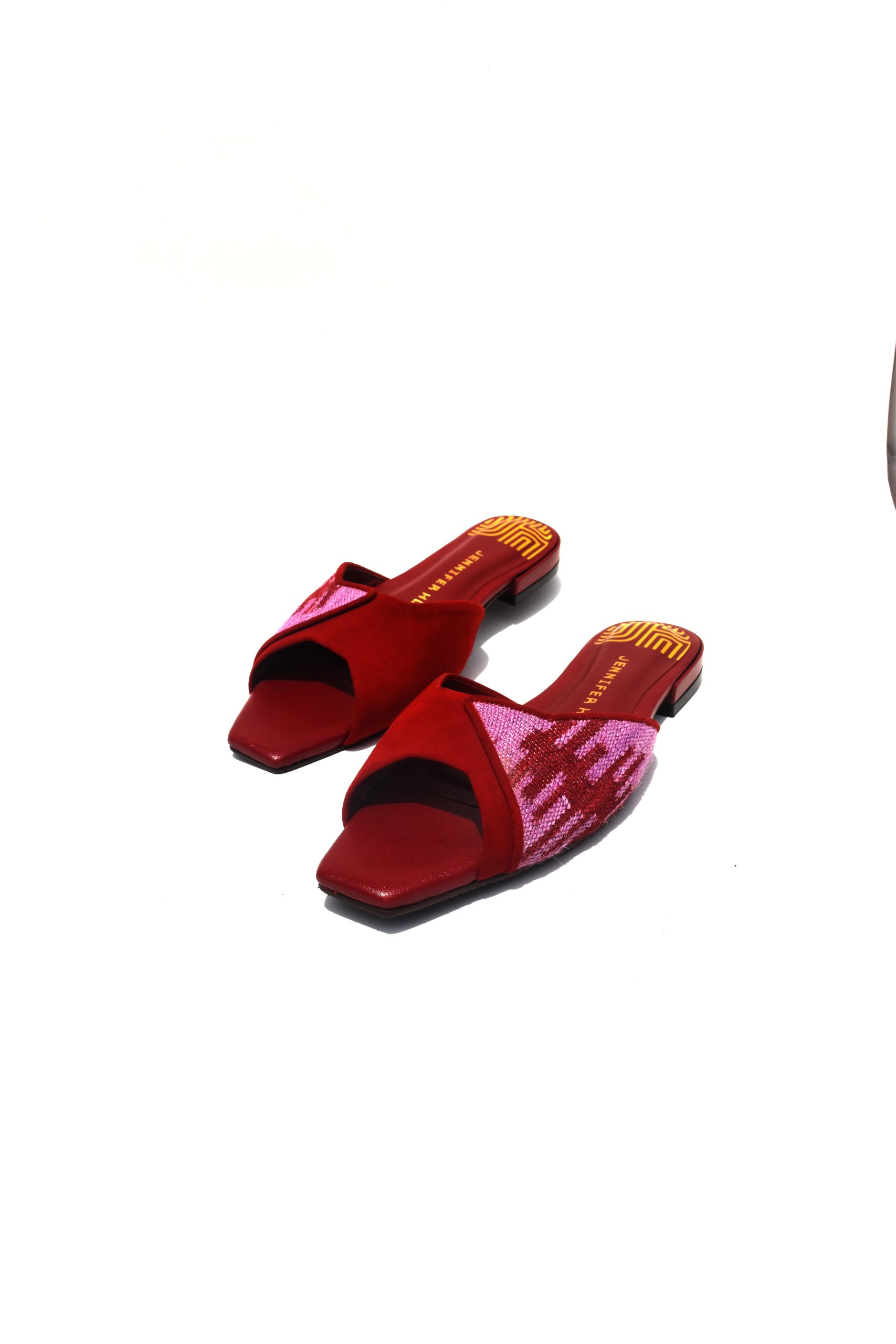 + Free ShippingThe Summer Nina L-Red sandals showcase a defined silhouette crafted in red suede and matching red goatskin leather. A handcrafted alpaca textile panel in light purple and red tones adds dimension and a subtle artisanal contrast to the bold base. Lined with premium red napa leather and set on a delicate 1.5 mm heel, this design offers confident color expression with balanced, everyday comfort.